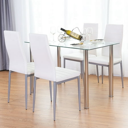Apr 17, 2020 · the table is fitted with four matching dining chairs in a triangular shape which are hidden underneath the table. Add to compare compare now. Costway 5 pc dining set wood metal table and 4 chairs kitchen breakfast furniture new. Bonnlo 3.9 out of 5 stars 299 ratings Bonnlo 7 pieces dining table set kitchen dinner table with 6 chairs dining room table set for dinig room, kitchen, dinette glass tabletop with 6 pu leather metal chairs, clear&white brand:
